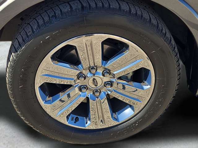 The exterior is dressed to impress, featuring a chrome-accented grille, angular step bars, and 20-inch chrome-like wheels that give the F-150 a bold, commanding presence. The gray exterior color exudes a refined, sophisticated style that will turn heads wherever you go.