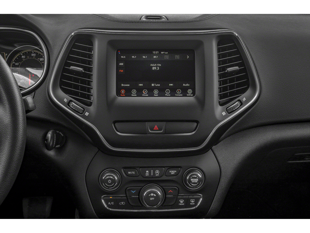 - Radio w/Seek-Scan, Clock, Speed Compensated Volume Control, Aux Audio Input Jack, Steering Wheel Controls, Voice Activation, Radio Data System and Uconnect External Memory Control