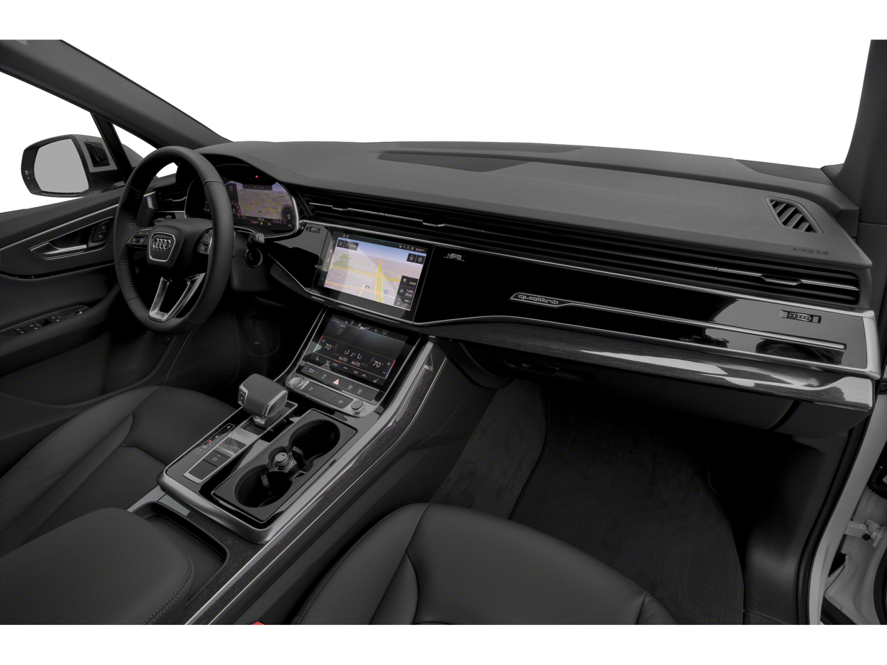 - Convenience Package -inc: Audi Phone Box w/Wireless Charging, signal booster, 3-Spoke Multifunction Steering Wheel w/Paddles, Heated, Ambient Interior Lighting Package, Heated Auto-Dimming Power Folding Exterior Mirrors, memory, Topview Camera System, virtual 360 view