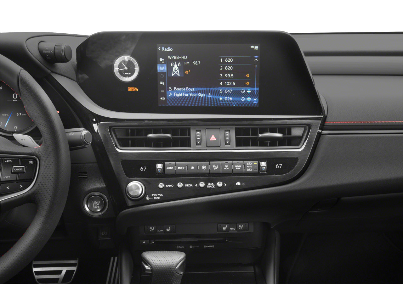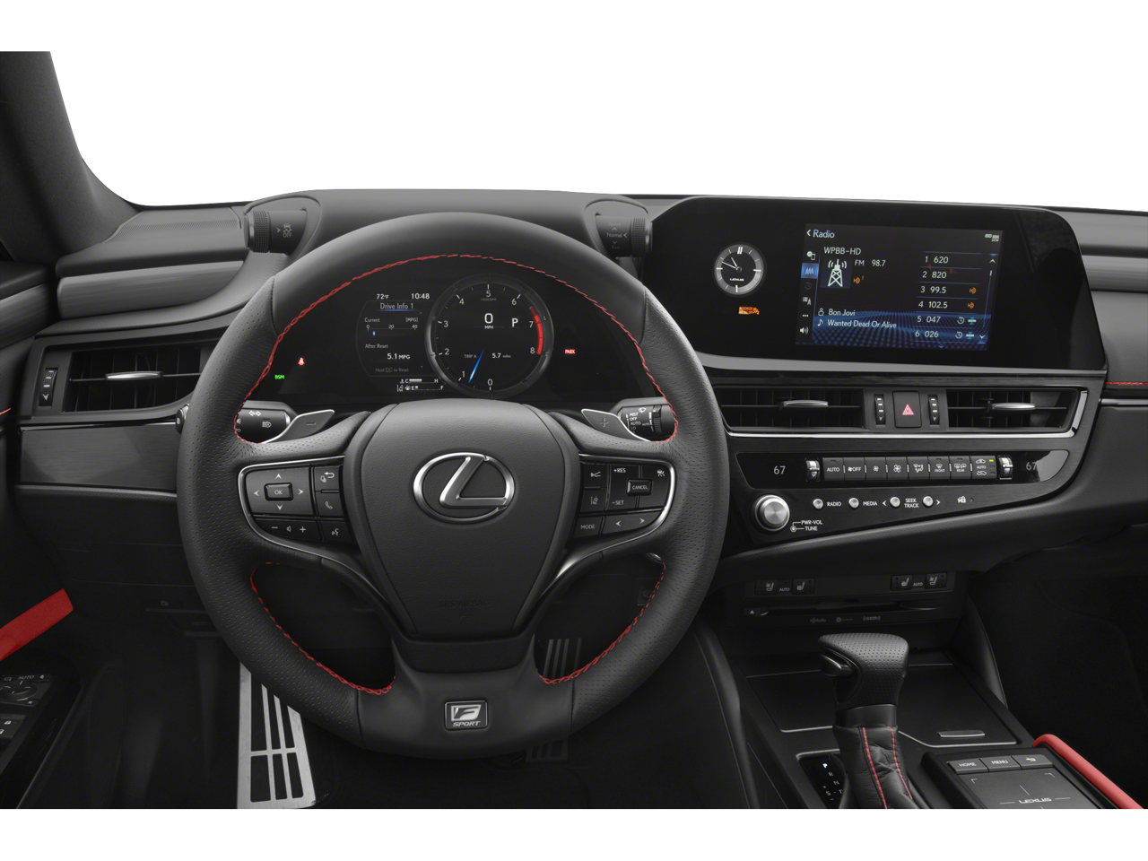 - Radio: Lexus Multimedia System -inc: 8.0" touchscreen color display, Apple CarPlay integration, Android Auto, Amazon Alexa compatibility, Remote Touch Interface (RTI) pad w/back button, 7" MID screen, 10 speakers Pioneer audio system, USB audio input connections, backup monitor, Bluetooth® hands free phone and automatic phonebook download capabilities, Bluetooth® streaming audio, CD player, HD Radio, SiriusXM 3-month platinum plan trial subscription), Lexus Enform Safety Connect (included for the first three years of ownership), Lexus Enform Service Connect (included for the first 10 years of ownership), Lexus Enform Wi-Fi, 4GB (three-month trial is included), Lexus Enform Remote w/Amazon Alexa and Google Assistant compatibility (included for the first three years of ownership) and Lexus mobile app services (Lexus Enform Remote, Lexus Drivers and more)
