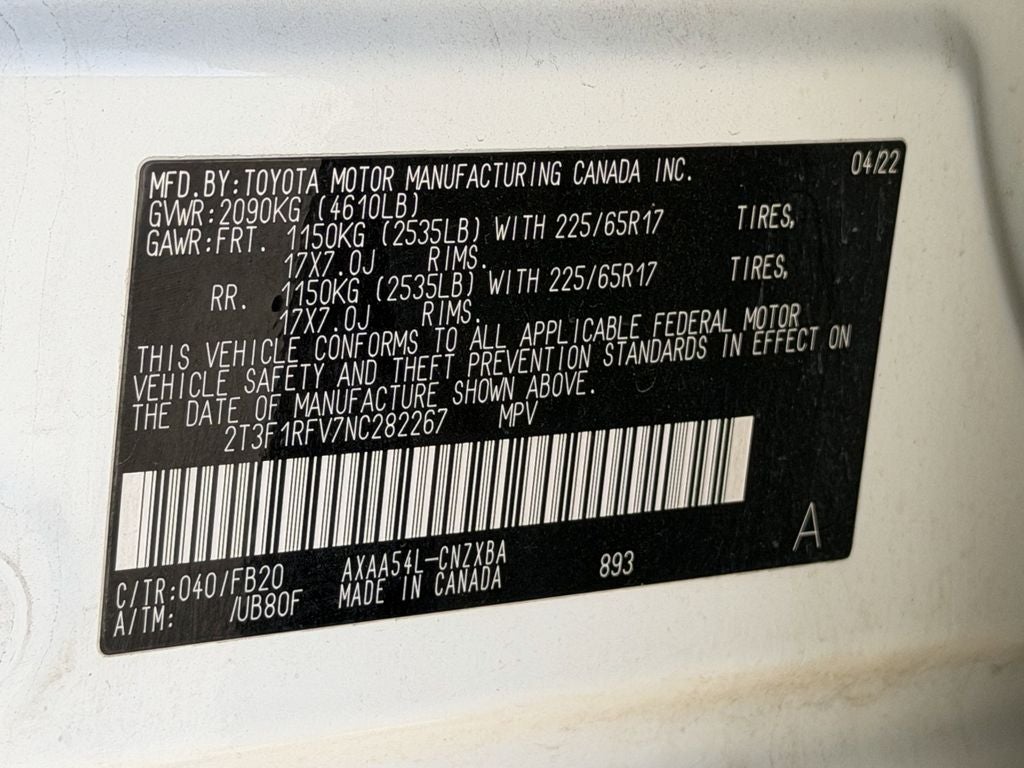 4D Sport Utility, 2.5L 4-Cylinder DOHC Dual VVT-i, 8-Speed Automatic, AWD, White, Ash Cloth. 2022 Toyota 27/34 City/Highway MPG RAV4 LE AWD 8-Speed Automatic 2.5L 4-Cylinder DOHC Dual VVT-i