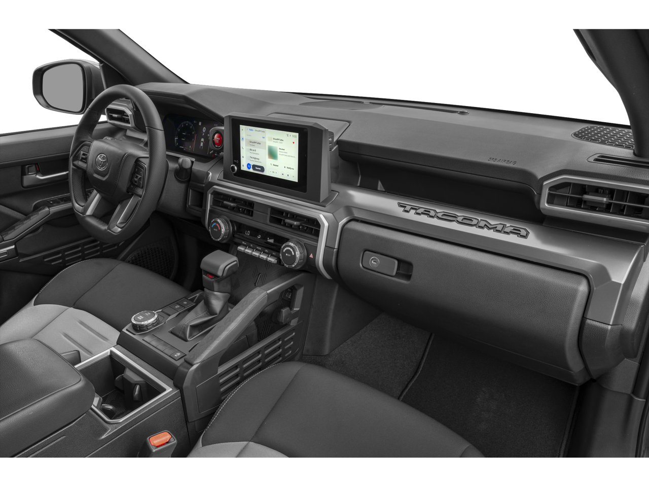 The interior of this Tacoma is designed with the driver in mind, featuring a spacious and well-appointed cabin. Settle into the supportive fabric-trimmed seats and enjoy the convenience of the 8 Toyota Audio Multimedia system, complete with seamless smartphone integration. The leather-wrapped steering wheel and tilt/telescoping functionality provide a personalized driving experience, while the automatic climate control ensures year-round comfort.
